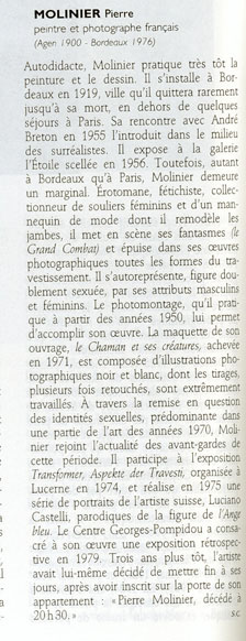 Artiste fétichiste et travesti, réalisera des photographies dont la quantité d’auto-portraits, d’une sophistication extrême, couvrant toutes les formes de l’autoérotisme.