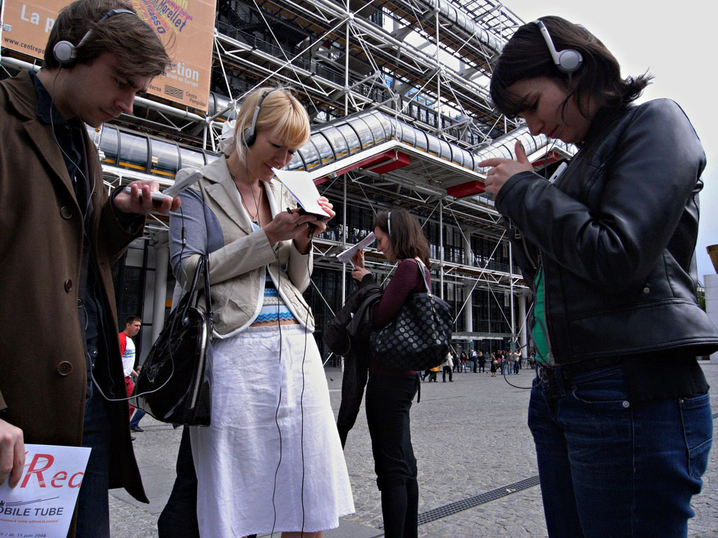 Expérience Mobile Tube (conception : Gwenola Wagon), Centre Pompidou, 15 juin 2008. (photo JLB)