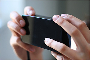 J’ai donc cherché comment on pouvait combiner le caractère extrêmement mobile de cette caméra très légère avec le fait que le téléphone soit en même temps une visionneuse portative. Le téléphone vidéo fait partie d’une famille plus large que j’appellerai les écrans mobiles ou nomades, même si « nomade » est un terme déjà trop connoté par la philosophie ou la sociologie. Dans la famille des écrans mobiles, il y a le téléphone mais il y a aussi les consoles de jeux portables, sur lesquelles on peut mettre des films, des appareils photos qui ont aussi des écrans et puis les baladeurs comme le iPod vidéo qui est une sorte d’intermédiaire.